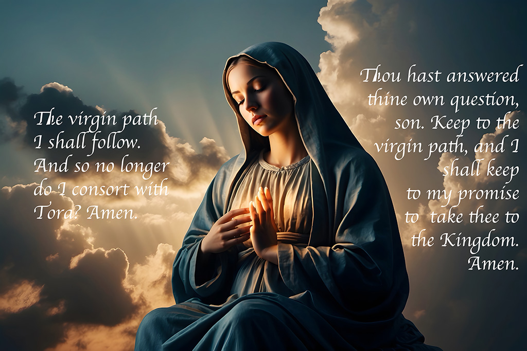 Mary, I shalt keep to virgin path. And I am no longer to consort with Tora? Amen.