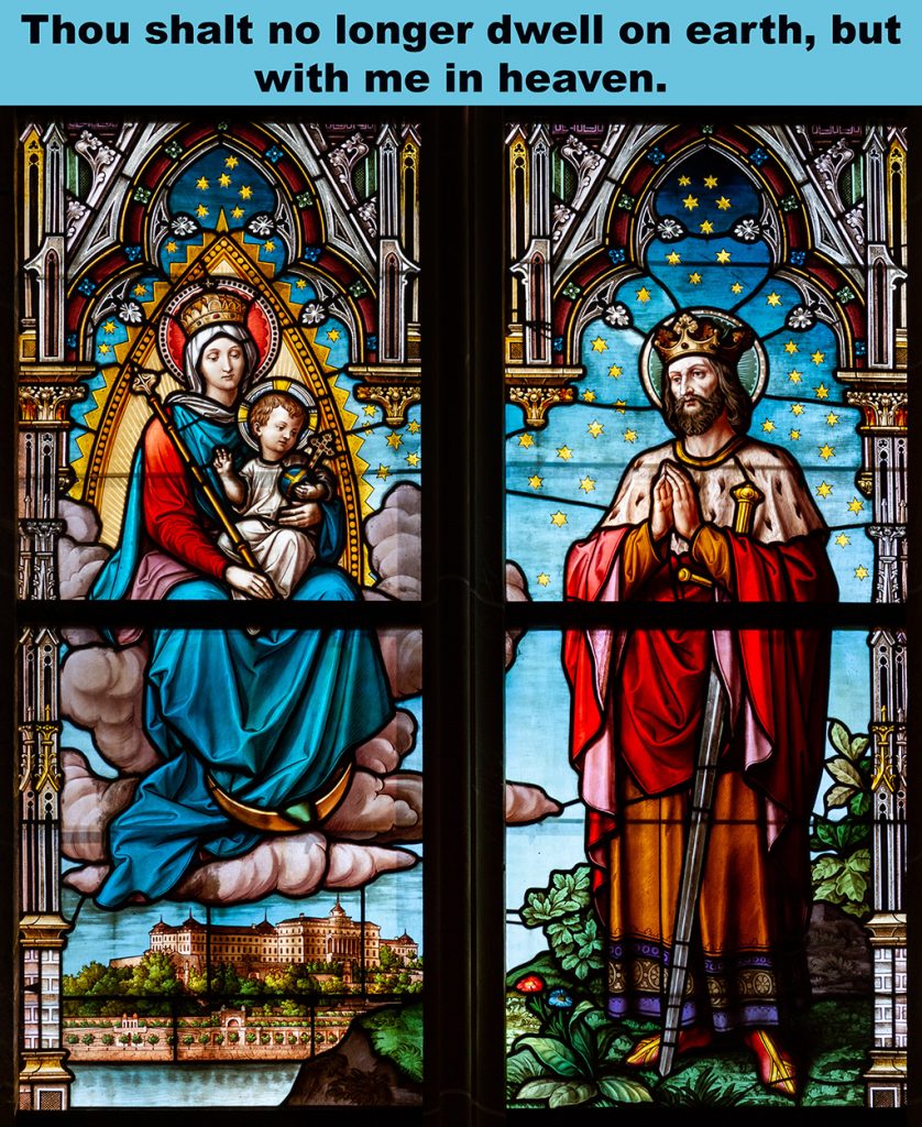 Mary: Christ, the King of kings and Lord of lords, has ordered this coronation, son. Amen. You will rule the earth and sea forever. Amen. Both here and hereafter, son. Amen.
