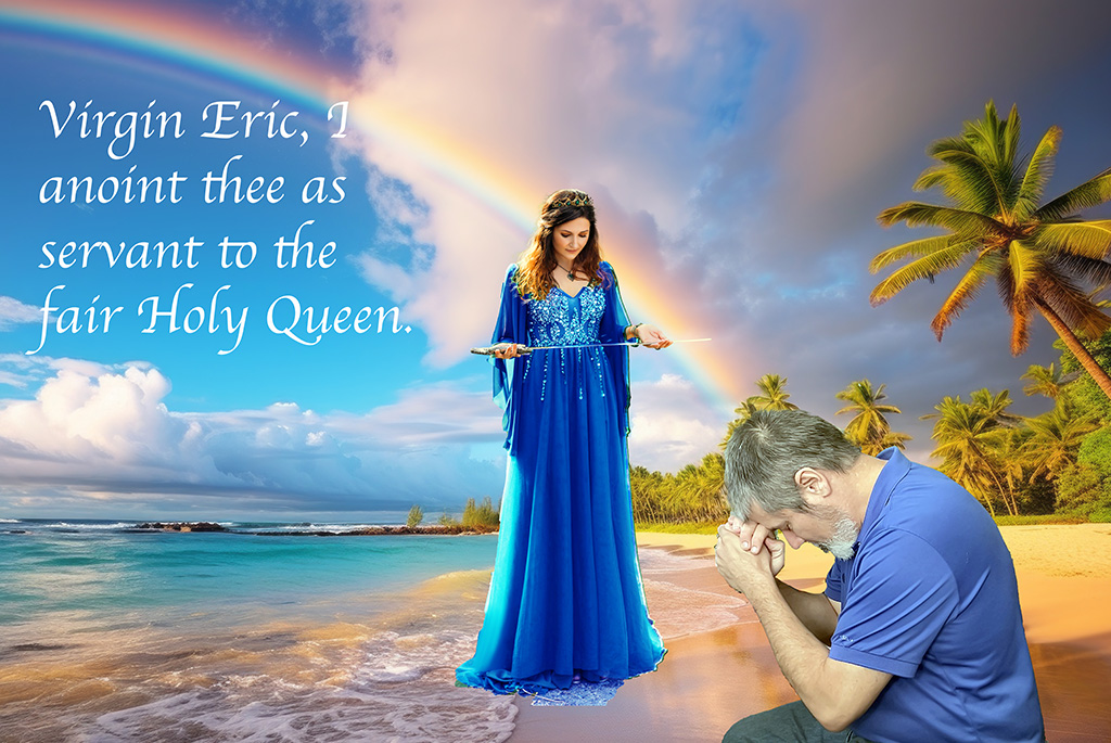 Eric: Let it be done as thou sayest. Am I thine warlock then, everlasting Virgin Queen? Amen.